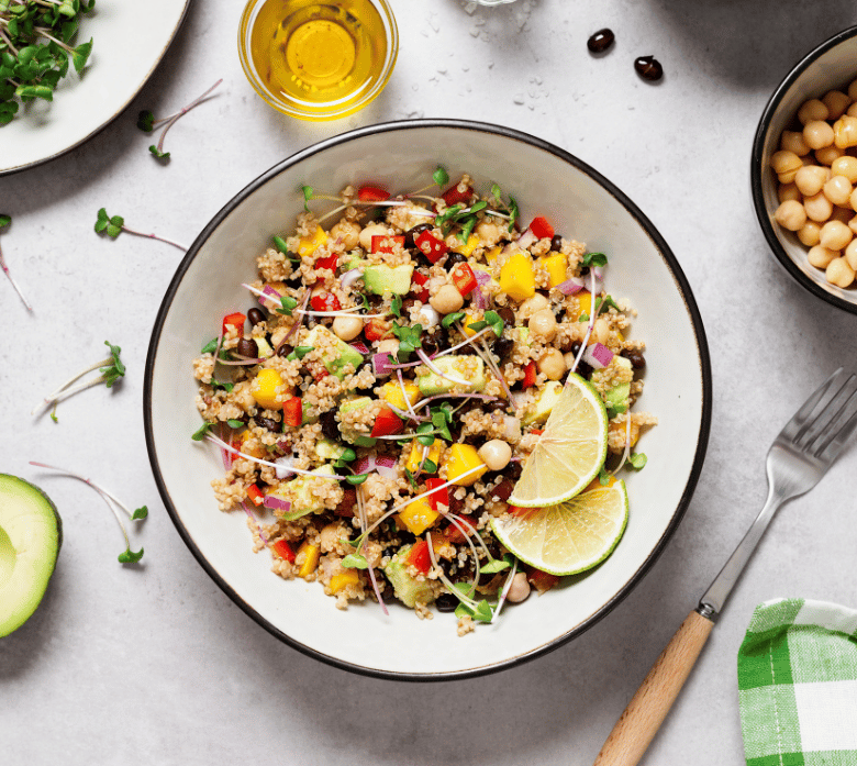 Kinoa ve doğranmış sebzeleri bir kasede karıştırın.